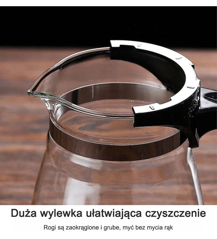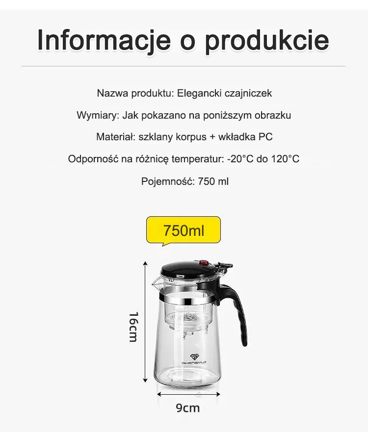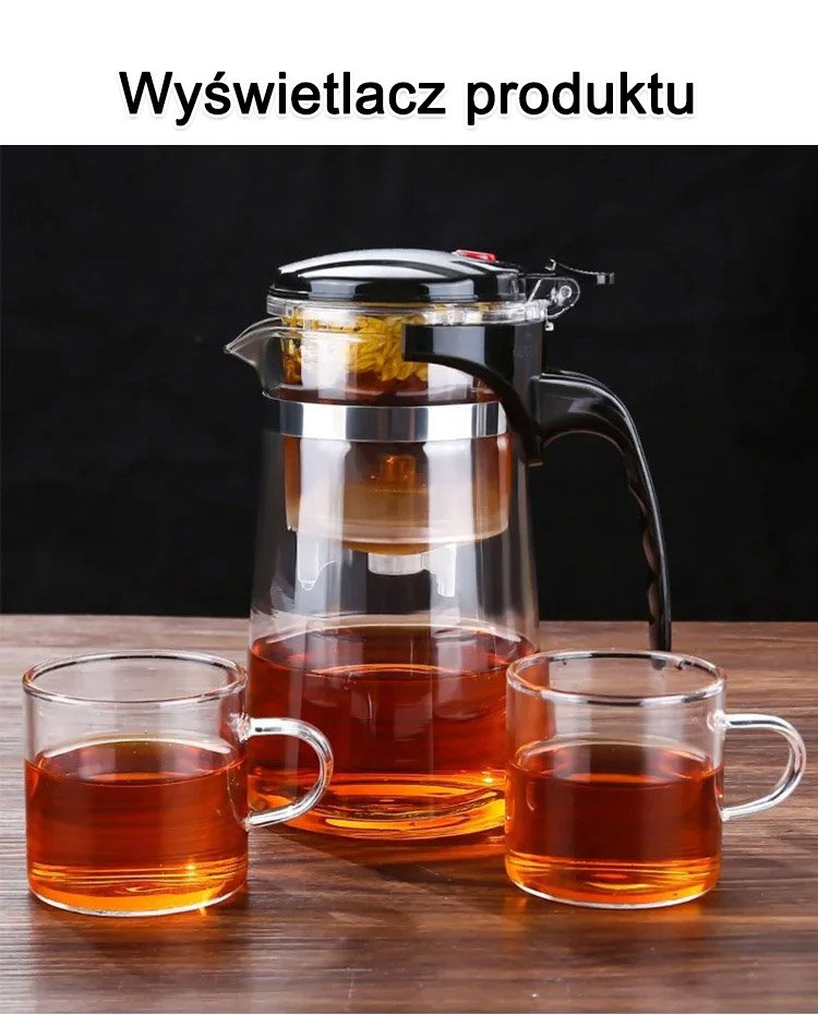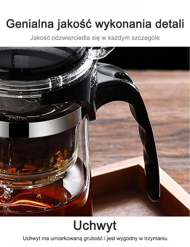 ● Szklany zestaw do herbaty wykonany z wysokiej jakości, odpornego na wysoką temperaturę szkła, gwarantuje trwałość i bezpieczeństwo użytkowania na co dzień. ● Elegancki i nowoczesny design sprawia, że zestaw doskonale prezentuje się na każdym stole, dodając wyjątkowego uroku chwilom spędzonym przy herbacie. ● Przezroczysta konstrukcja pozwala podziwiać barwę naparu, co podnosi estetykę serwowania i czyni każdą herbatę prawdziwym rytuałem. ● Idealny na prezent dla miłośników herbaty – zestaw zapakowany jest w stylowe opakowanie, gotowe do wręczenia bliskiej osobie. ● Łatwy w czyszczeniu i przystosowany do mycia w zmywarce, co zapewnia wygodę użytkowania nawet przy codziennym korzystaniu.