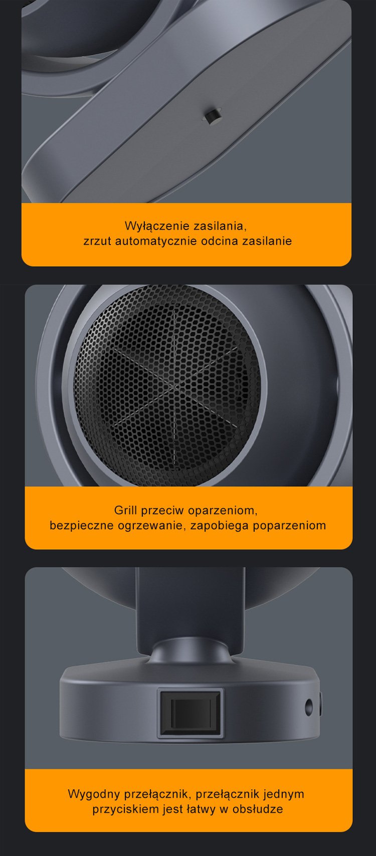 ● Bezświetlna błyskawiczna nagrzewnica powietrza zapewnia szybkie i efektywne ogrzewanie pomieszczeń bez emitowania światła, co gwarantuje komfort nawet w nocy. ● Nowoczesna technologia nagrzewania pozwala na oszczędność energii i cichą pracę urządzenia, idealną do sypialni, biura lub pokoju dziecięcego. ● Kompaktowy i elegancki design sprawia, że nagrzewnica doskonale wpasuje się w każde wnętrze, nie zajmując dużo miejsca i zachowując wysoką wydajność. ● Łatwa obsługa i szybka instalacja pozwalają cieszyć się ciepłem niemal natychmiast po włączeniu urządzenia, bez potrzeby skomplikowanych ustawień. ● Bezpieczeństwo użytkowania zapewniają wbudowane zabezpieczenia przed przegrzaniem oraz stabilna konstrukcja odporna na przewrócenie.